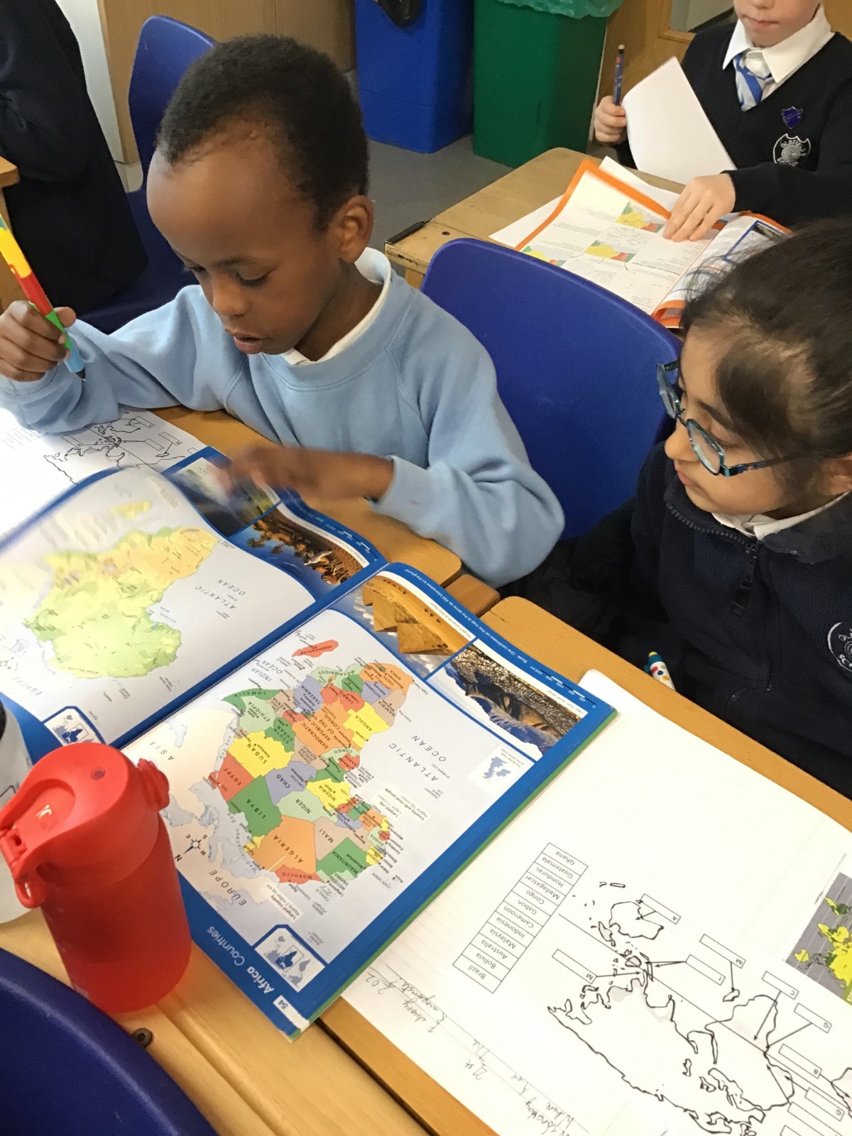 Year 3 investigating atlases to discover where the rainforests are in the world.