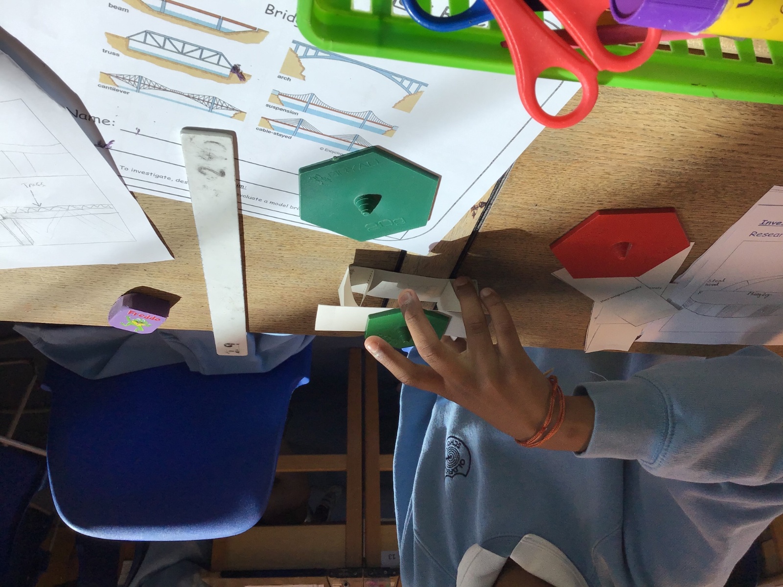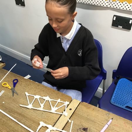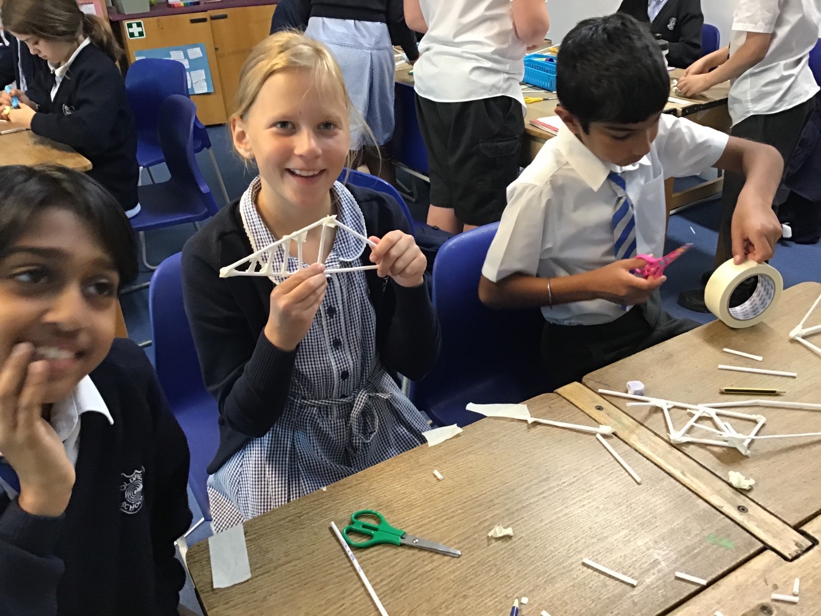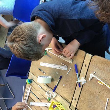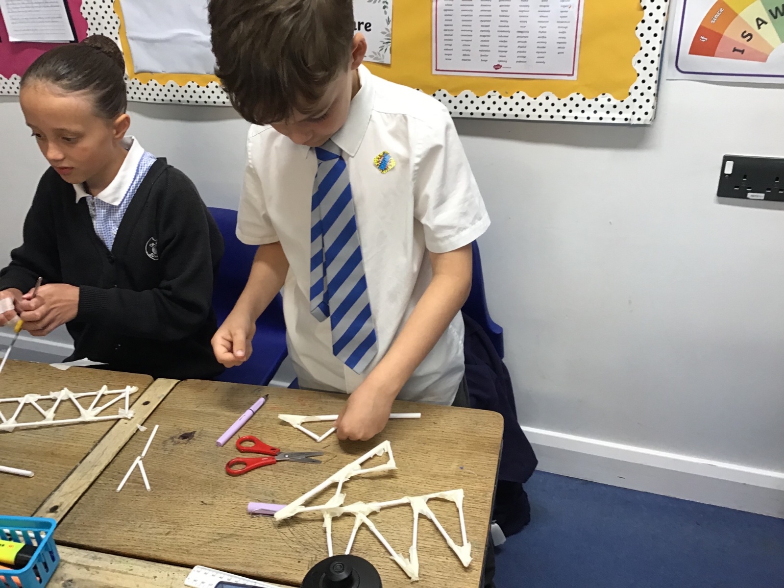 Investigating truss patterns with art straw models and making/testing model beam bridges for strength.