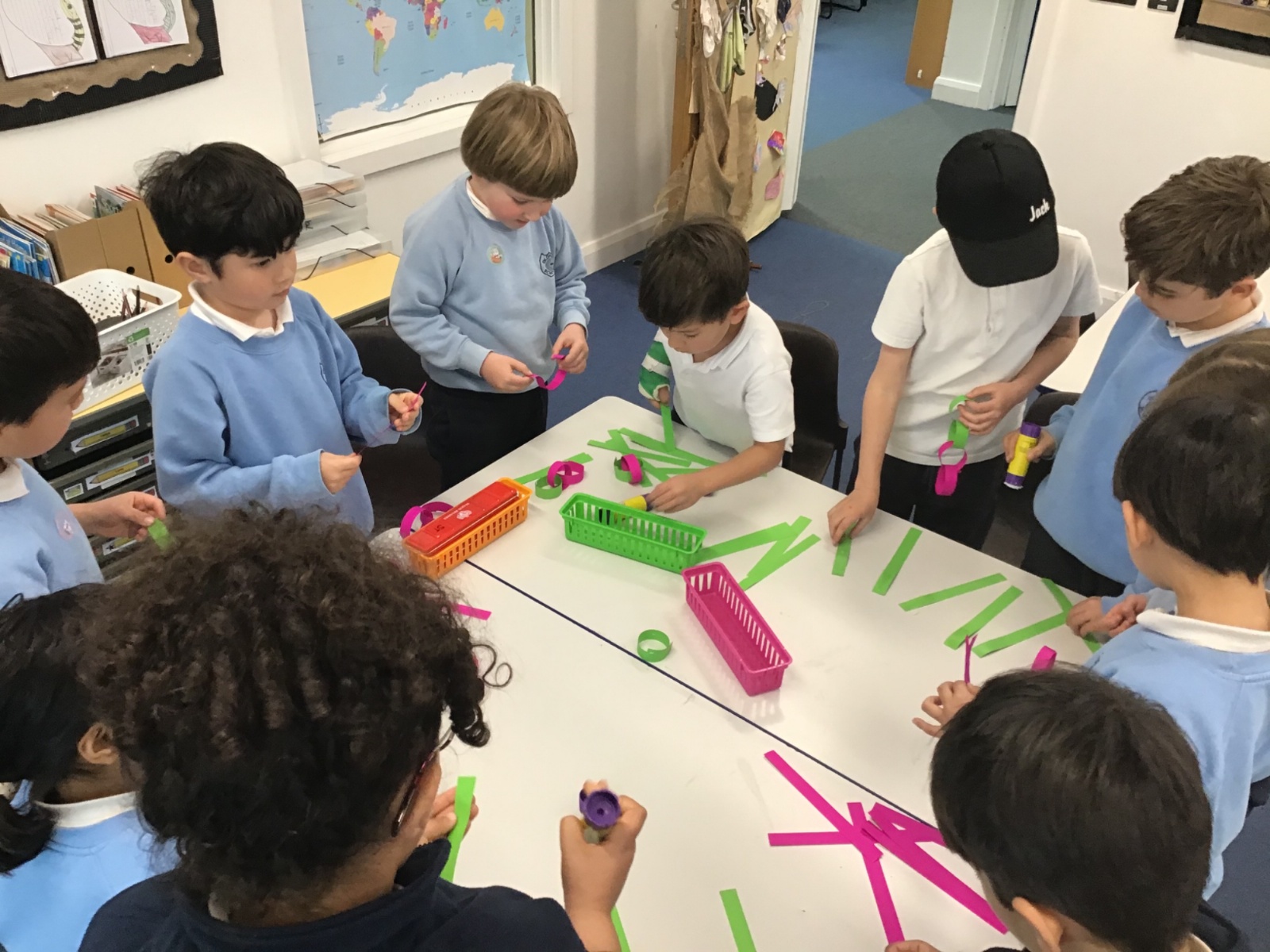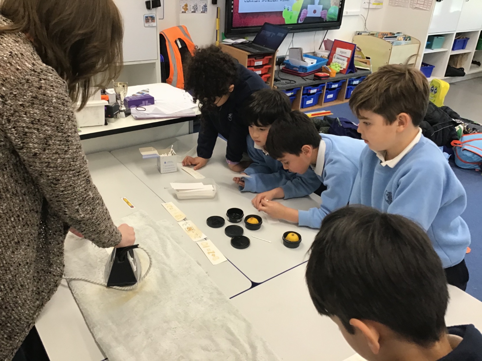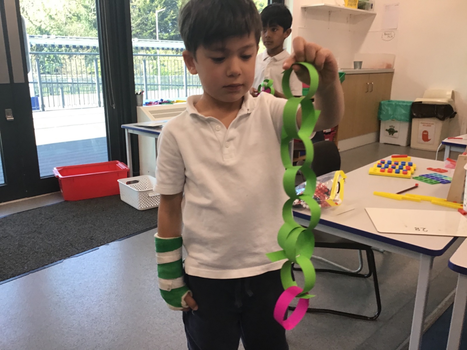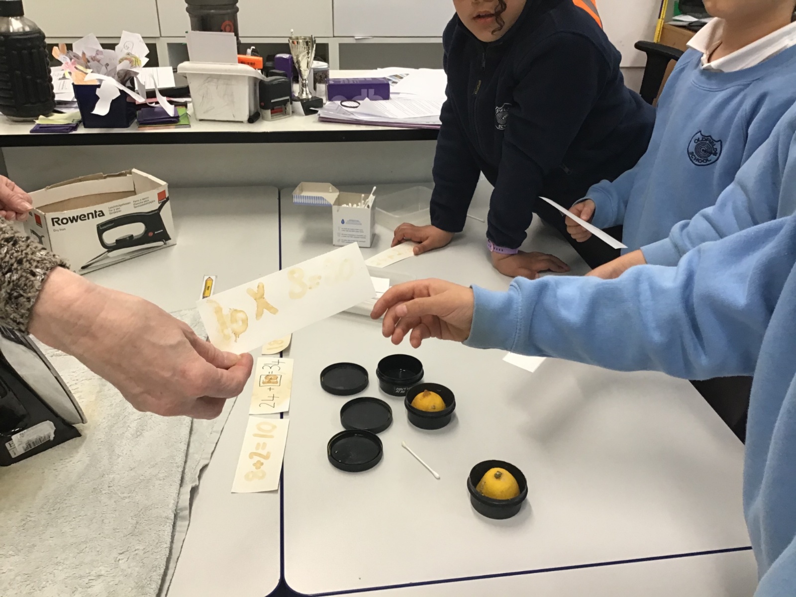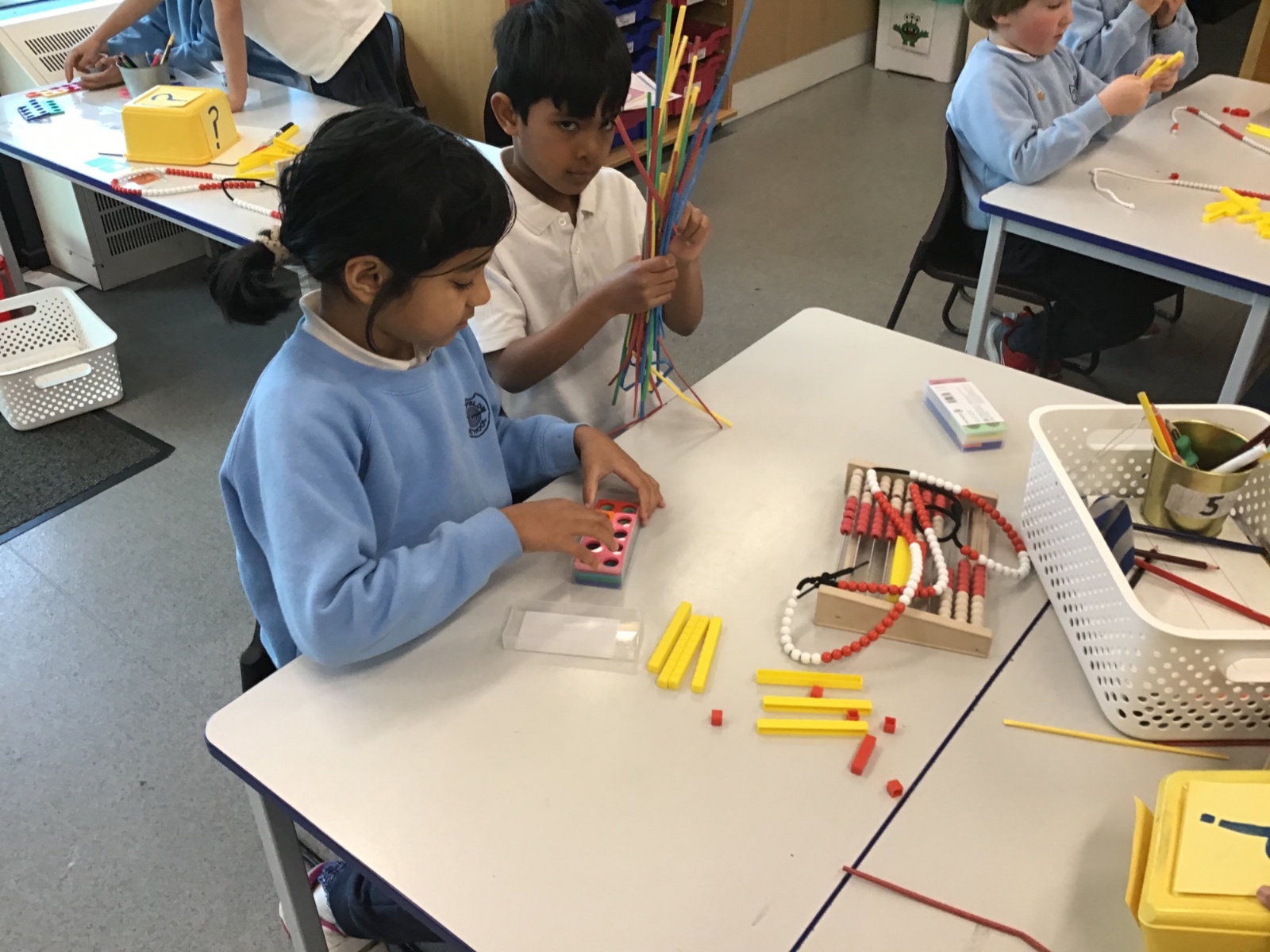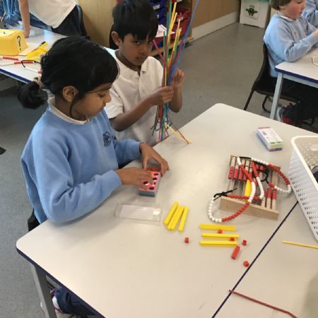 They experimented with invisible ink, made paper chain number bonds and gave concrete clues to hidden numbers using base 10, maths straws, Rekenreks, beads and Numicon.